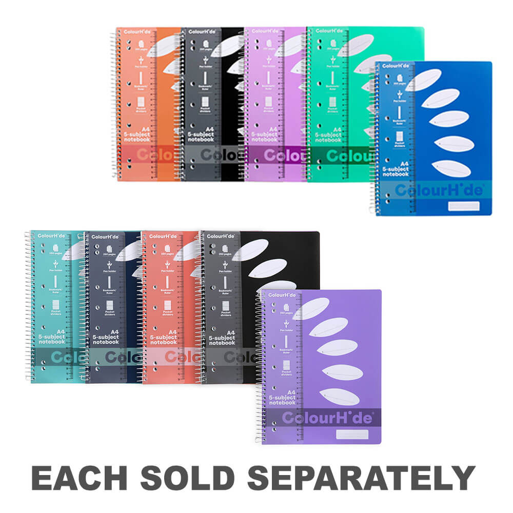 Il taccuino Colourhide è un ottimo strumento per annotare note e informazioni, che si tratti di scuola, università, lavoro o casa. Ha un legame con un lato a spirale e una copertura rigida in polipropilene per una maggiore protezione e 250 pagine con molto spazio per la scrittura. È separato in 5 soggetti separati in modo da poter organizzare le tue note e informazioni.