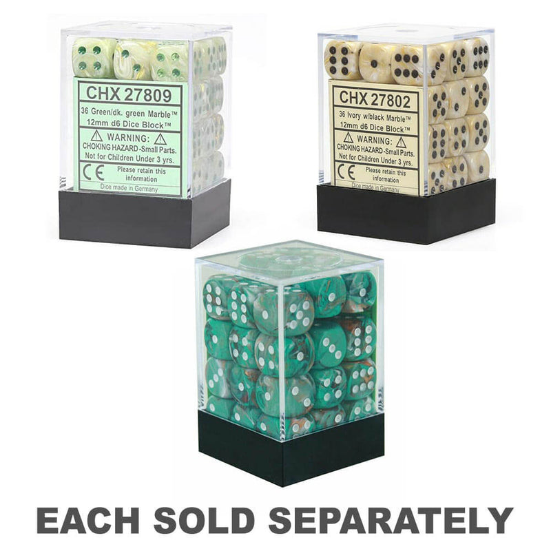 - Blocco da dadi di Chessex da 12 mm di marmo D6 (36 dadi) - Oxi -Copper con pips bianchi