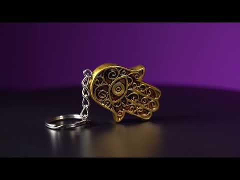 Keementchain a mano mistico dipinto a mano. È dotato di intricato design Hamsa con una finitura metallica su un tradizionale anello di portachiavi.