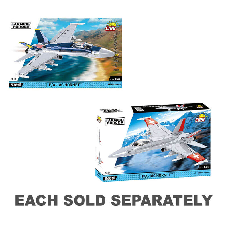 Il calabrone F/A-18C è un modello di combattente multi-ruolo unico nei colori della Svizzera. Il piano è stato preparato in un modello in scala 1:48, utilizzando 540 blocchi di costruzione COBI. Il set include stampe di alta qualità che imitano il dipinto dell'aereo originale. Il modello è dotato di un carrello pieghevole e ruote rotanti. Sotto le ali c'è un grande arsenale di armi. Puoi posizionare una figura pilota speciale nella cabina. Il set include anche un supporto per il display a blocchi e una piastra con il nome dell'aeromobile. Questo set esclusivo e autorizzato è rivolto a tutti, indipendentemente dall'età, compresi i fan di aviazione e militari. L'aereo sembra altrettanto attraente in un ufficio o nella stanza di un adolescente.