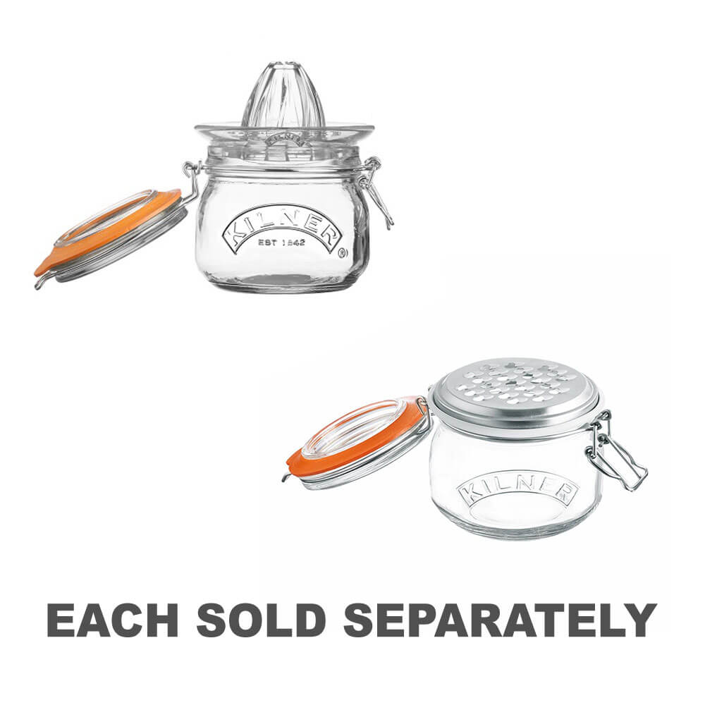 Grattare il tuo formaggio non è mai stato così facile con il set di barattoli per grate di Kilner. Basta posizionare l'attaccamento della grattugia sulla parte superiore del barattolo di Kilner e grattare il tuo formaggio preferito direttamente nel barattolo sottostante. Nel set è incluso un barattolo da 0,5 litri con coperchio iconico clip, perfetto per sigillare la freschezza e la conservazione in frigorifero. L'allegato della grattugia si adatta anche ai barattoli di clip di Kilner tra cui 0,5L, 1L, 1,5L e 2L di dimensioni. Sicuro di lavastoviglie (sigillo rimosso).