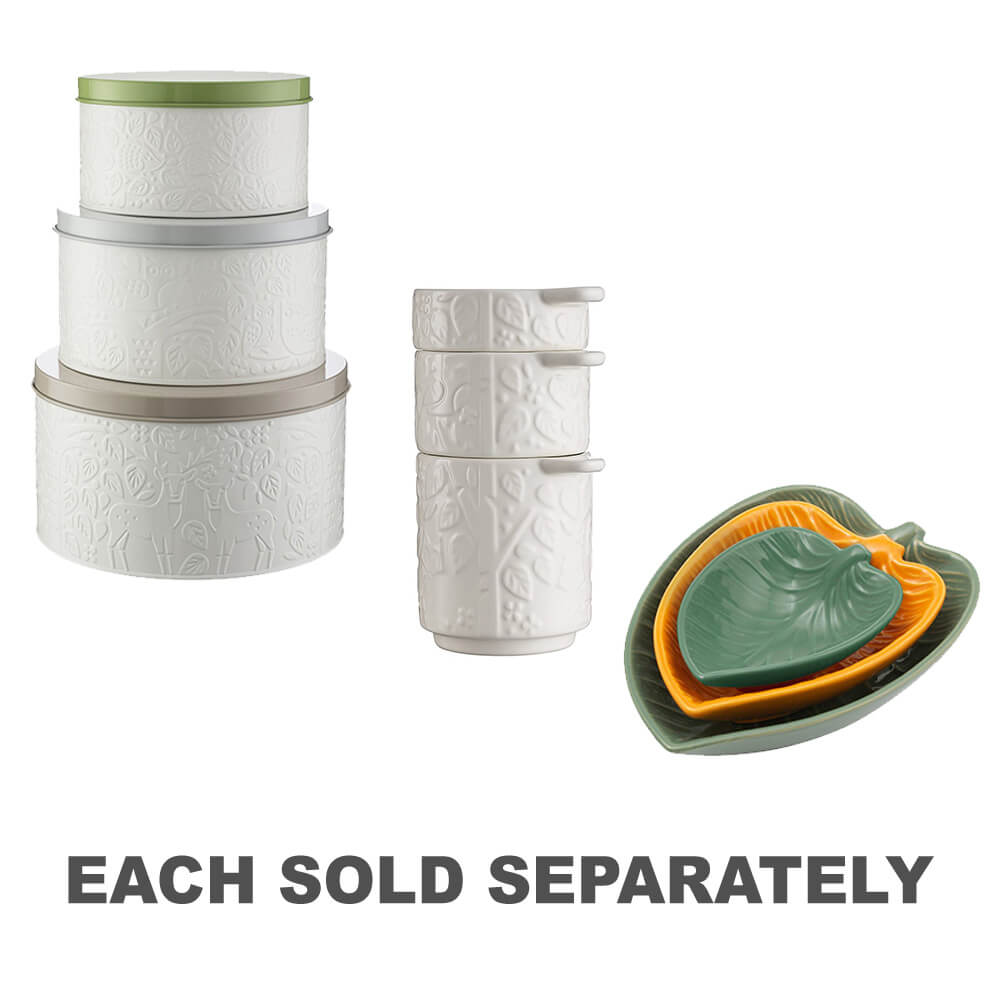 Misurare gli ingredienti secchi in stile con denaro muratore nelle tazze di misurazione della foresta. Questo set di tre tazze di misurazione di nidificazione comprende capacità 1/4-, 1/2- e 1 tazza. Realizzato in gresino e in rilievo con scene della foresta ispirate alle storie popolari. Sicuro di microonde e lavastoviglie.