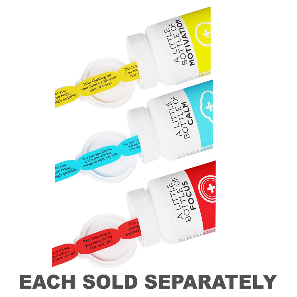 - La tua bottiglia contiene 52 citazioni di carta a forma di pillola progettate per migliorare la tua attenzione mentale e addestrare la tua concentrazione!