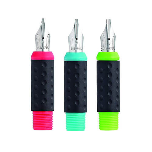 - Tre pennini codificati a colori per varietà di ictus: pennino fine (rosa), pennino medio (verde acqua), pennino largo (verde lime)