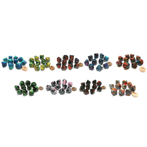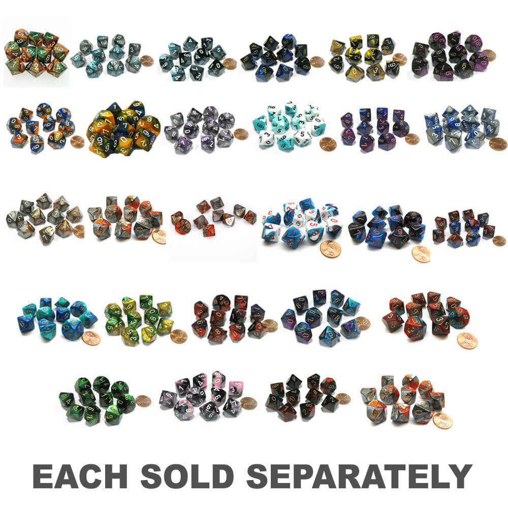 Questo set di 10 dadi gemelli look, atmosfere e rotola bene e sarà una grande aggiunta a qualsiasi gioco o collezione. Il numero superiore viene utilizzato su un tiro. I bordi consentono un facile riconoscimento delle forme e i numeri sono più grandi possibile su ciascuna faccia. Questo set include 10 dadi D10 (dieci lati). I dadi sono disponibili nell'imballaggio a conchiglia al dettaglio. Ogni matrice misura circa 16 mm (altezza di misurazione mentre la matrice è in piano). Stanno misurando ~ 23 mm da un punto all'altro.