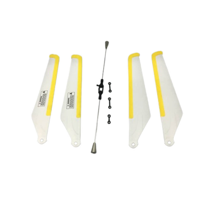 Una serie di pale, barra di bilanciamento e fibbie del connettore per adattarsi all'elicottero GT3400 Thunderbird.