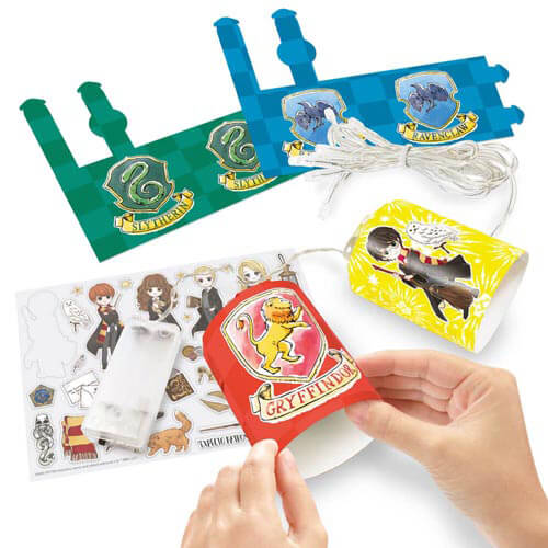 Gli Harry Potter Maker Kitz sono divertenti da creare! Crea i tuoi hogwarts successivi. Ci sono 10 luci di lanterna L.E.D da realizzare che includono le case Grifondoro, Serpeverde, Corvonclaw e Tassoraio. Personalizza le lanterne con adesivi. Il kit include oltre 30 adesivi. Richiede 2 batterie AA (non incluse). Adatto per età 6+.
