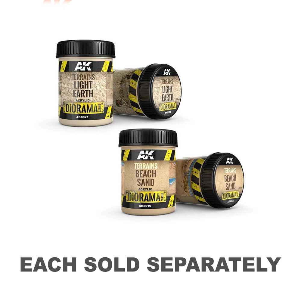 La sabbia da spiaggia è una consistenza fine e piatta per ricreare aree in spiaggia come le spiagge della Normandia o nel Pacifico. Questo è un prodotto acrilico di alta qualità sviluppato per il realismo estremo.