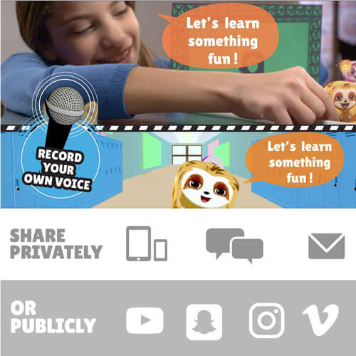 Sposta i personaggi carini tra la fotocamera e lo schermo verde. L'app anima i personaggi in tempo reale e puoi aggiungere voce o musica per creare un film animato unico. Dal momento che i volti dei bambini non sono nello scatto - solo gli adorabili personaggi dei cartoni animati - è sicuro pubblicare online se lo desideri farlo. Puoi anche scegliere di condividere i tuoi account di social media privati da condividere con amici e familiari.