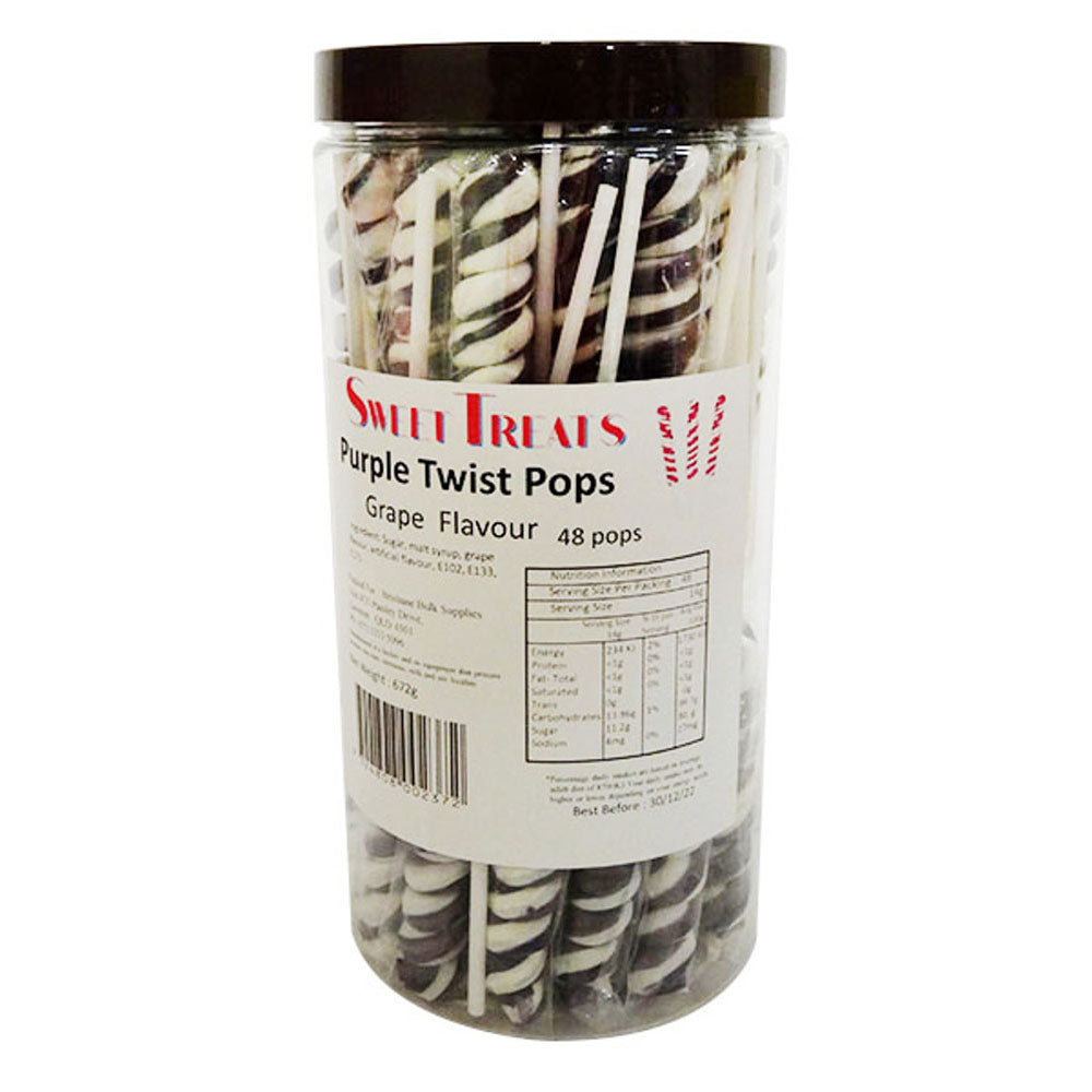 Ogni pop presenta un turbinio di viola e bianco, creando un motivo affascinante tanto bello quanto gustoso. Che tu stia celebrando un'occasione speciale o semplicemente bramando uno scoppio di sapore, Twist Pops promette un'esperienza zuccherata che sicuramente illuminerà la tua giornata. Concediti i turbini della dolcezza e goditi un tocco di gioia con ogni leccata.
