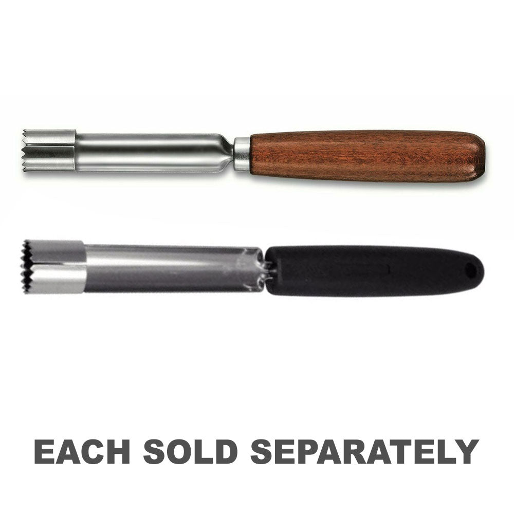 Un trapano di mela in acciaio inossidabile lungo 16 cm professionale con bordo seghettato che passa facilmente attraverso la mela. Dotato di una maniglia di polipropilene per una presa comoda.